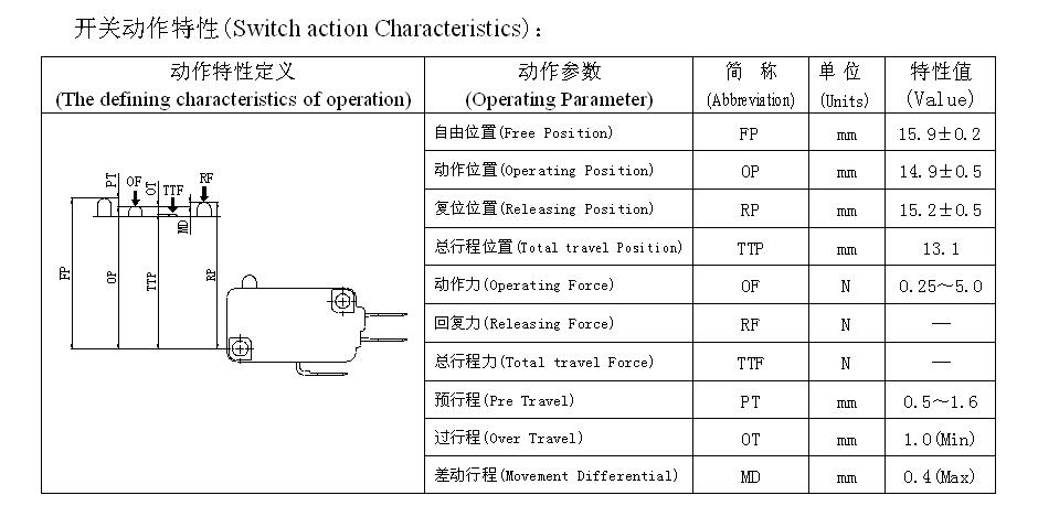 Maidir le feidhmíocht a spreagadh, úsáideann an táirge meicníocht snap-gníomh, le stróc oibriúcháin de ach 0.5-1.6mm agus fórsa oibriúcháin rialaithe idir 0.25-4N. Tairgeann sé freagra truicear tapa agus aiseolas soiléir, ag seachaint go héifeachtach saincheisteanna a bhaineann le "truicearú bréagach" agus "moill spreagtha." Tá an saolré i bhfad níos mó ná noirm an tionscail: tá an saol meicniúil níos mó ná 1 milliún timthriallta, agus sroicheann an saol leictreach níos mó ná 50,000 timthriall, rud a chuireann ar chumas oibriú cobhsaí fadtéarmach i gcásanna úsáide ard-minicíochta mar oighinn micreathonn agus leictreonaic feithicleach.