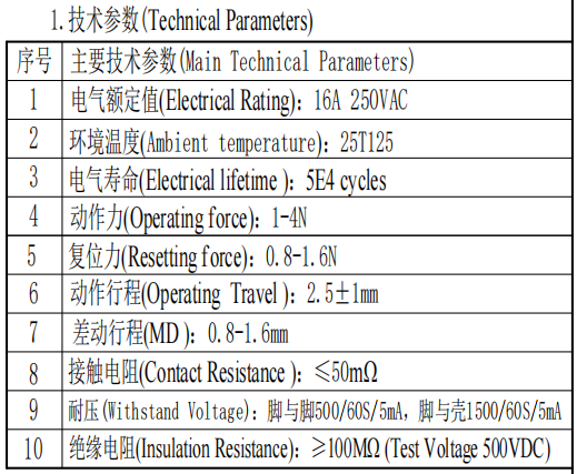 1 | Rátáil leictreach | 16A 250VAC | |