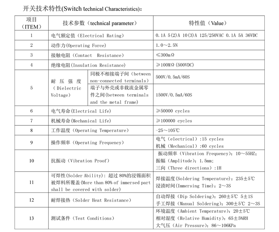 | 12 | Friotaíocht Teas Solder | Tum-sádráil: 260 ± 5 ℃ 5±1S Sádráil láimhe: 300 ± 5 ℃ 2~ 3S |